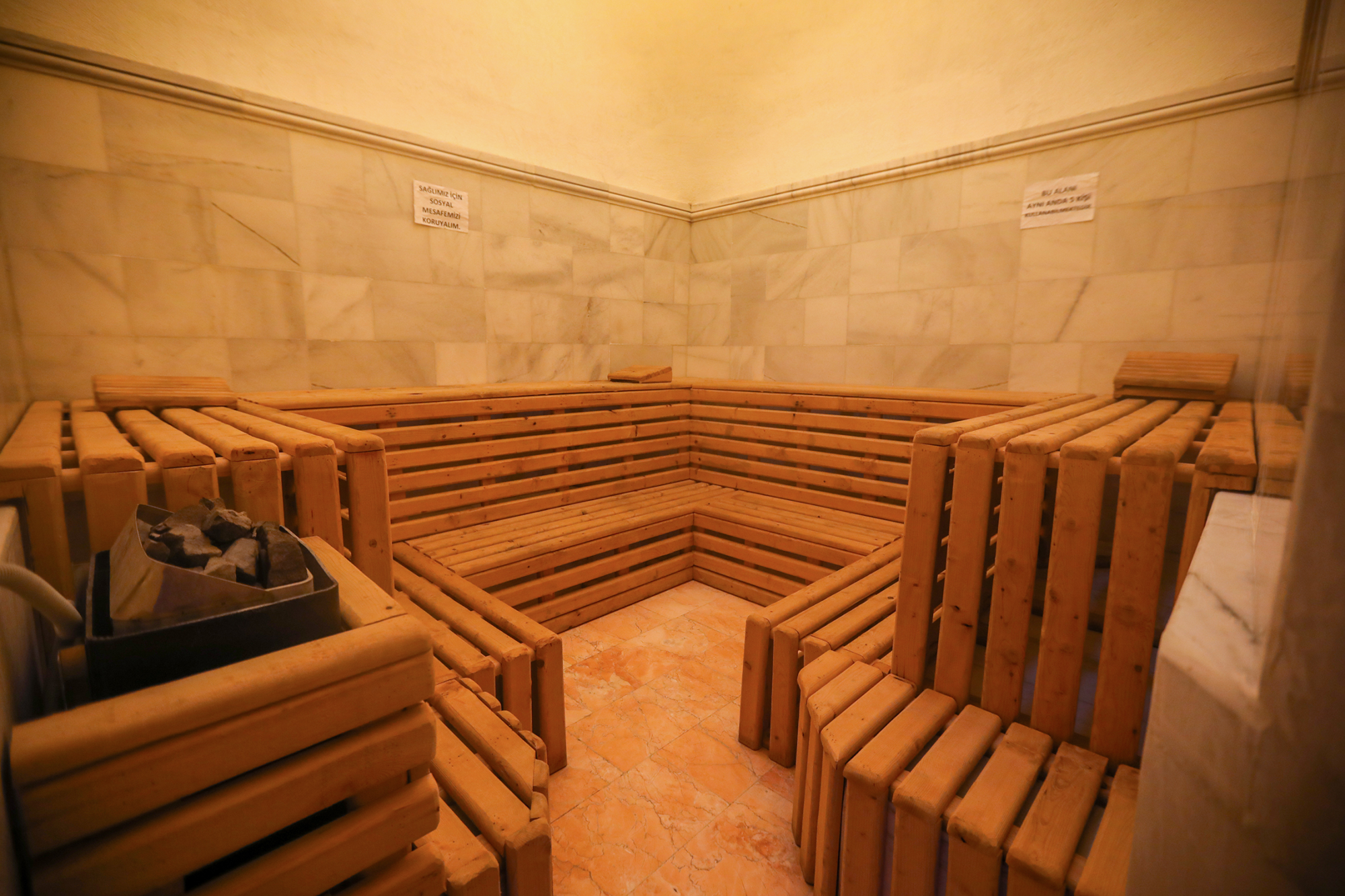 sistemiyle hizmet sunulan hamam, konforlu yapısıyla dikkat çekiyor.