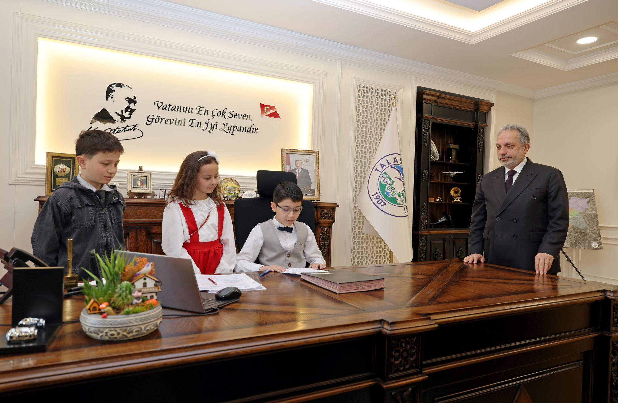 çocuklara verdiği değeri bir kez daha göstererek başkanlık koltuğunu temsili